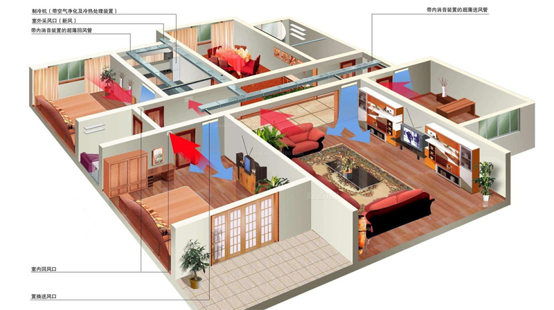 新風(fēng)系統(tǒng)能24小時(shí)源源不斷向室內(nèi)提供新鮮空氣,將室外新鮮空氣經(jīng)過(guò)處理后送入室內(nèi),通過(guò)風(fēng)口、排風(fēng)管道和風(fēng)機(jī)將室內(nèi)污濁空氣排出室內(nèi)。