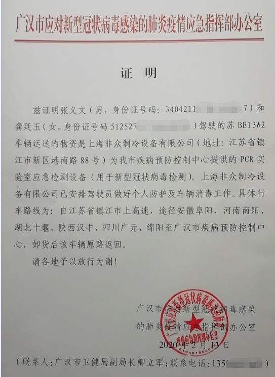 眾有實業(yè)旗下上海非眾制冷設(shè)備有限公司為四川省廣漢市疾病預防控制中心PCR實驗室(用于新型冠狀病毒肺炎檢測)提供的凈化型恒溫恒濕空調(diào)設(shè)備已經(jīng)在最短的時間內(nèi)以最快的專車運輸?shù)男问剿椭良部刂行模糜谝痪€疫情防控。