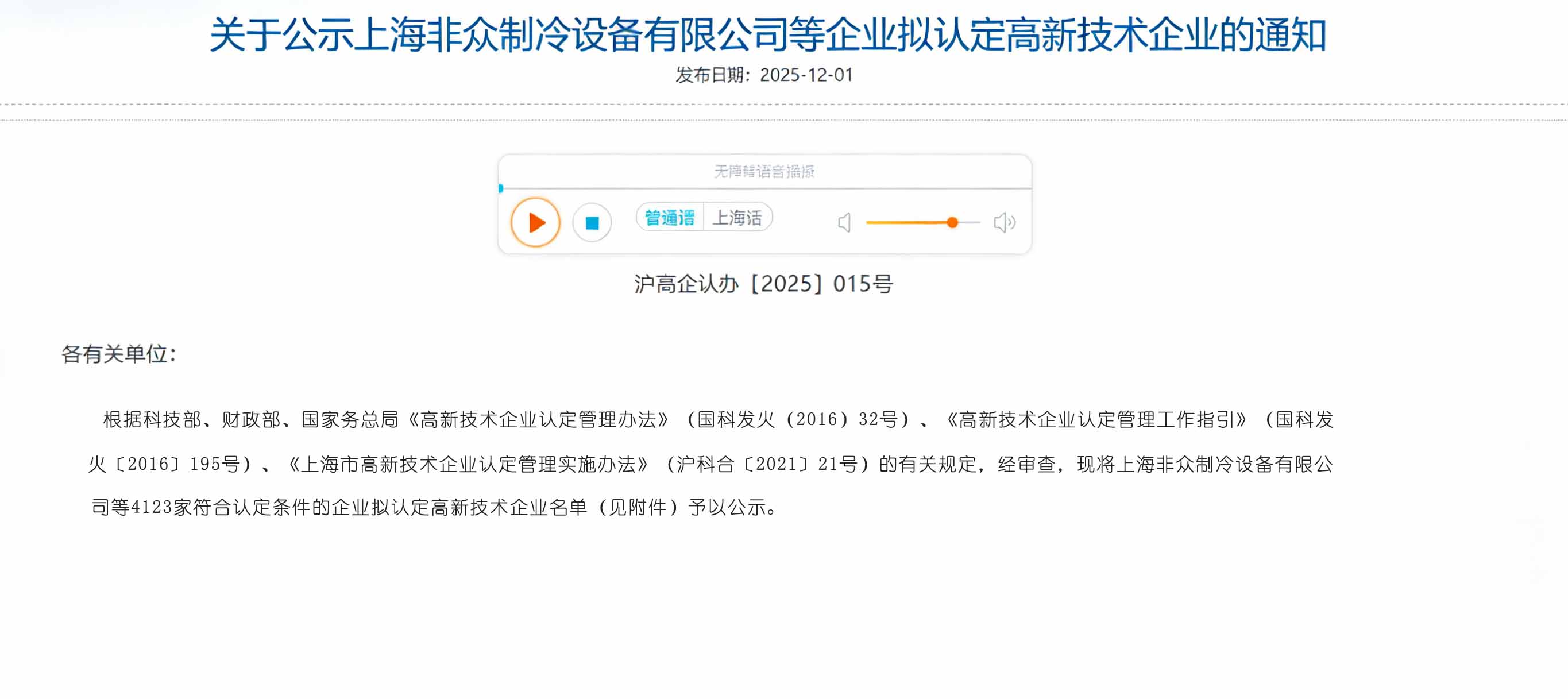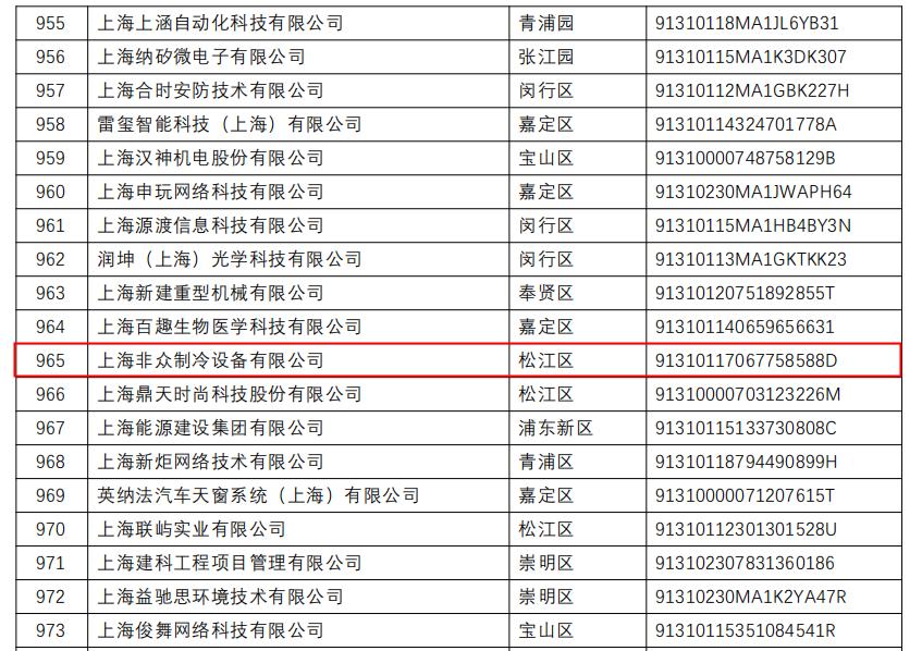 公告——熱烈祝賀上海非眾制冷設備有限公司再次認定高新技術企業!!!